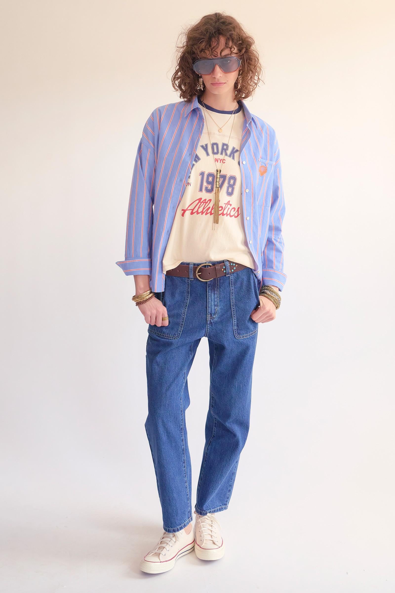 The Worker Nebraska revisite le jean utilitaire avec une allure moderne et affirmée. Sa coupe droite inspirée du workwear structure la silhouette tout en offrant une grande liberté de mouvement, tandis que le denim Nebraska apporte une tenue authentique et durable. Pensé pour un porté quotidien, il combine caractère, confort et style, pour une pièce forte et facile à associer. Détails : Coupe droite workwear Taille haute Denim Nebraska robuste et authentique Fermeture zippée et bouton métallique gravé Poches plaquées esprit utilitaire Cinq poches Longueur cheville