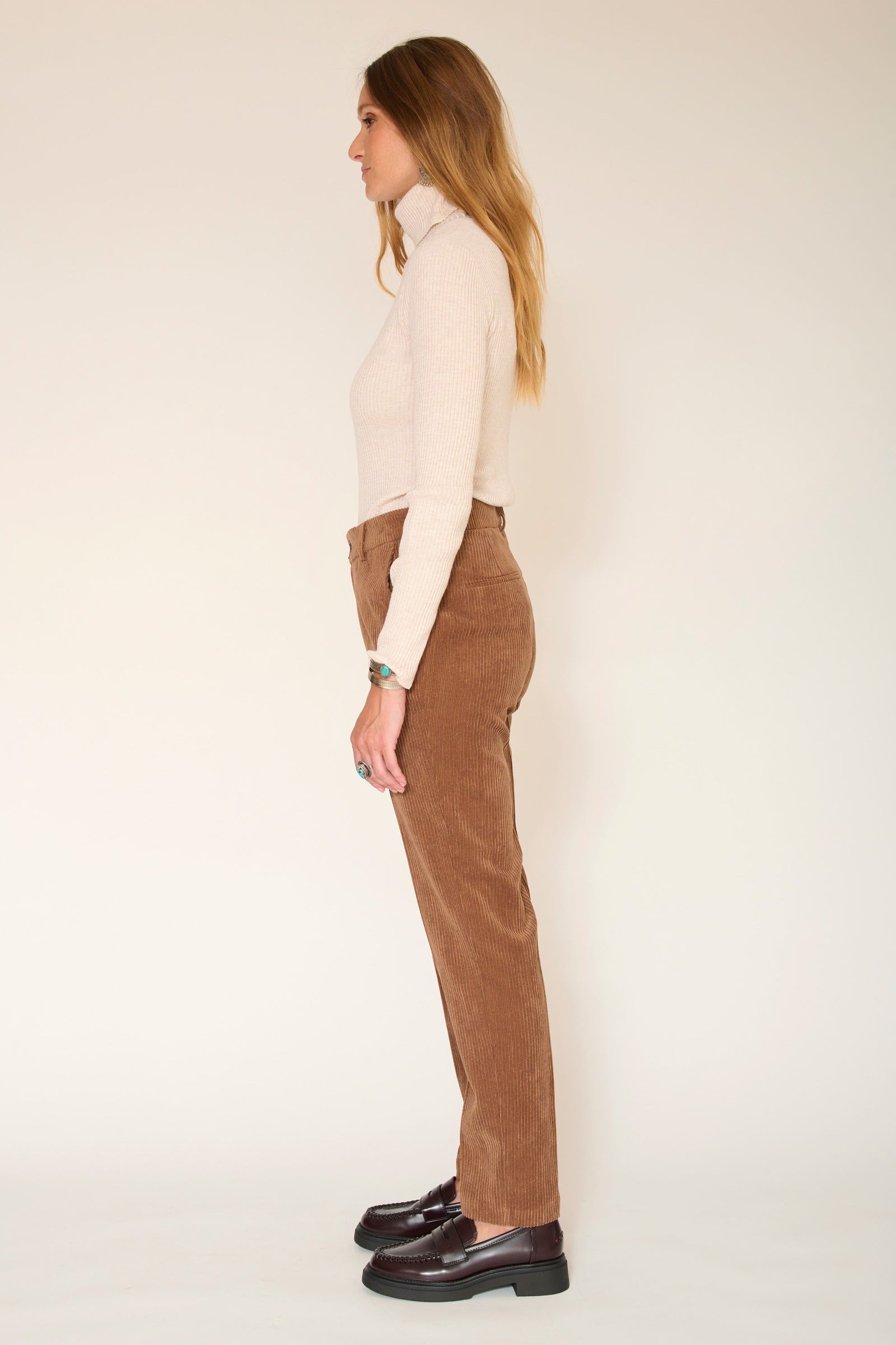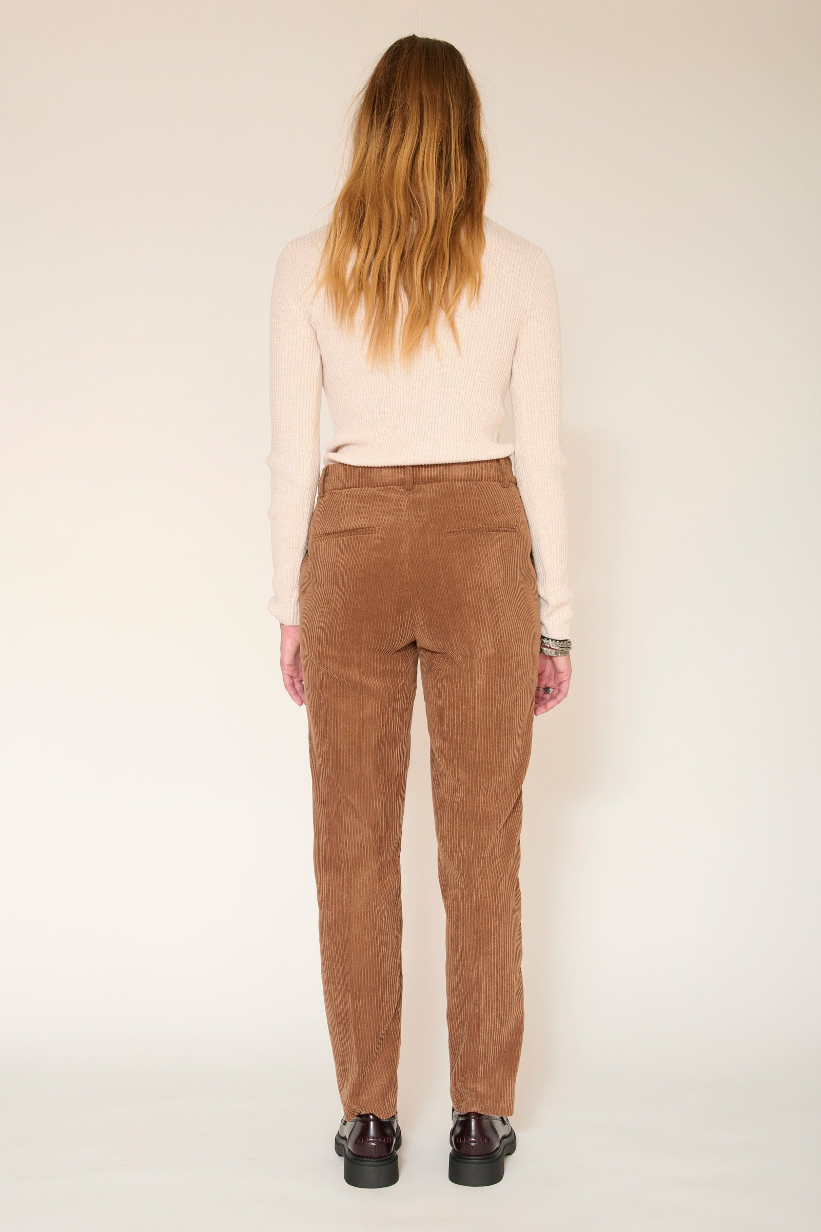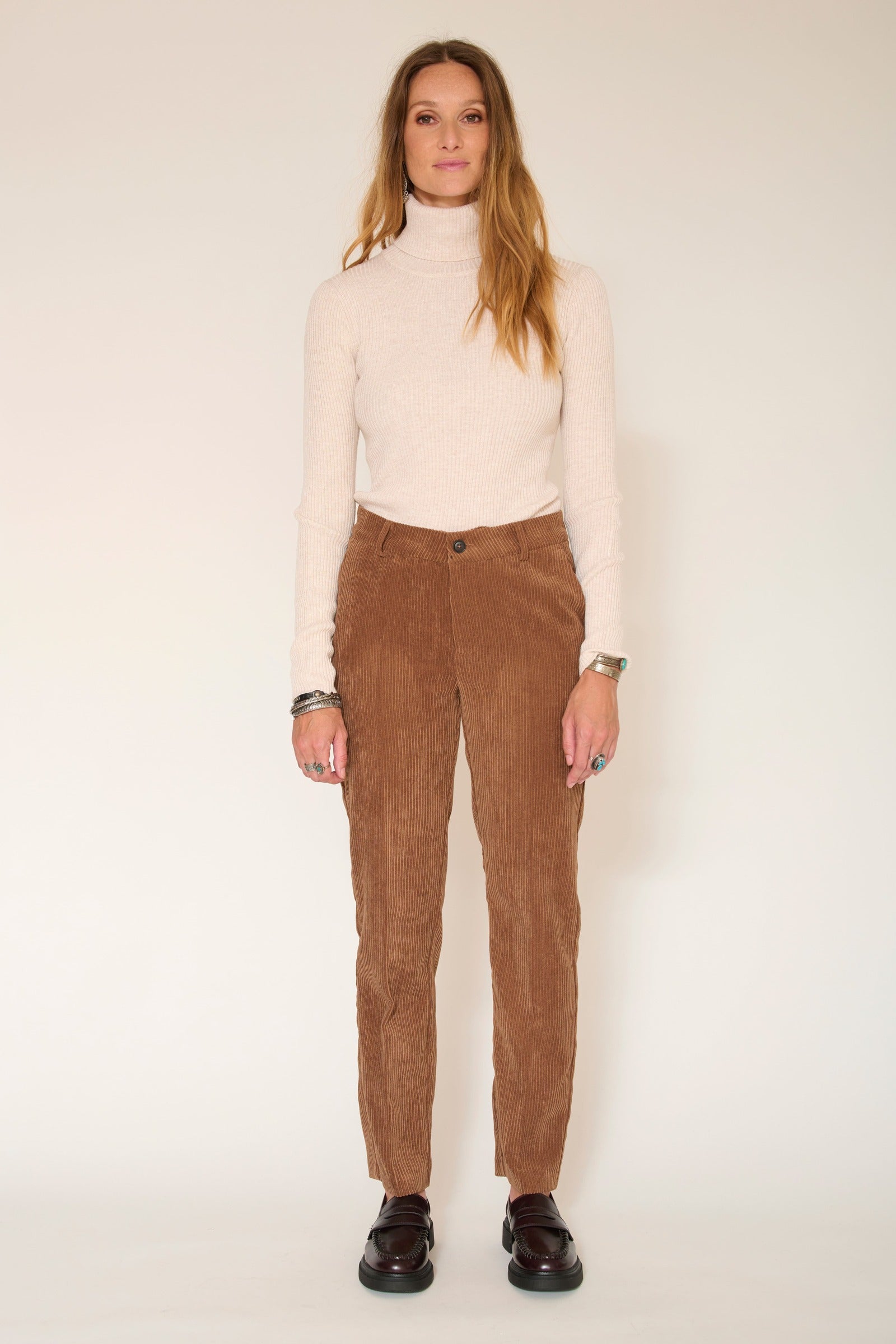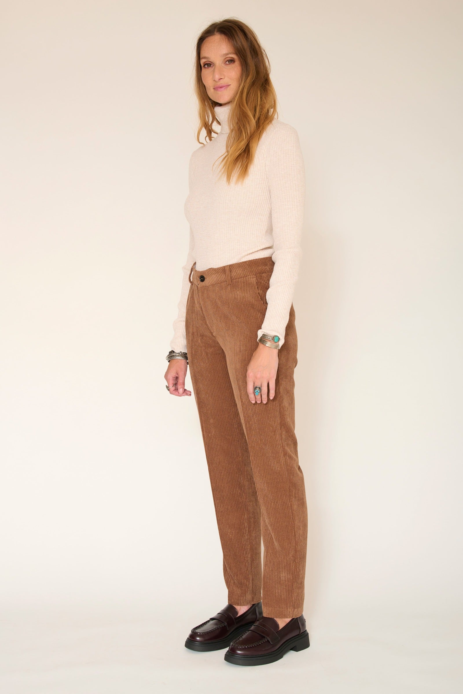 Ce pantalon se présente dans une teinte cacao, un brun chaud et riche qui apporte une touche de sophistication. Cette couleur neutre se marie facilement avec une variété de hauts, qu'ils soient clairs ou foncés, offrant ainsi de nombreuses possibilités de style.