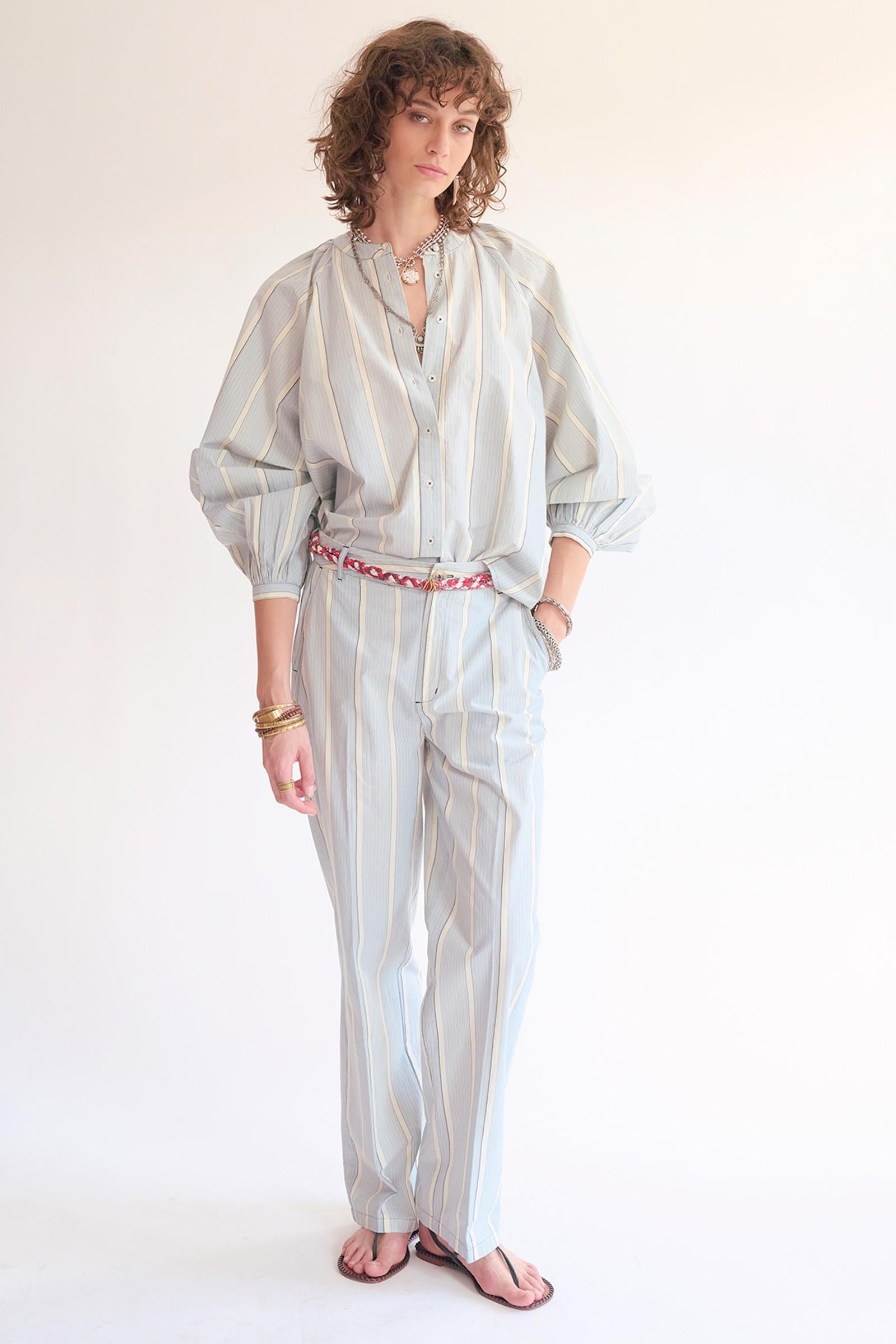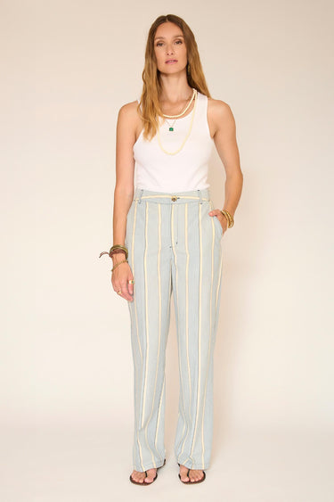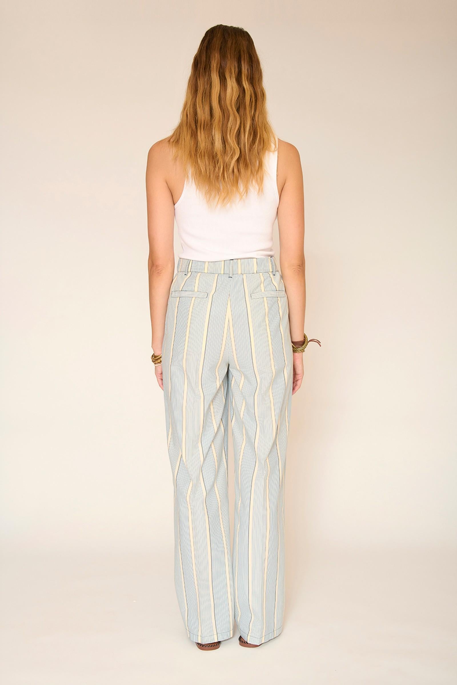 Le pantalon Palatice mise sur une allure nette et estivale. Sa coupe droite structure la silhouette, pendant que les rayures verticales élancent visuellement la jambe. La taille montée avec ceinture intégrée marque juste ce qu’il faut, sans rigidité. Le tissu est léger, respirant, agréable à porter quand les températures montent. Un pantalon qui fait le lien entre décontraction et tenue soignée, parfait avec un débardeur, une chemise fluide ou un tee-shirt rentré.