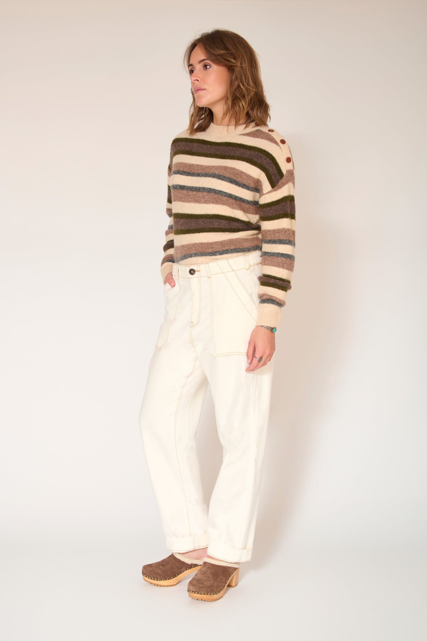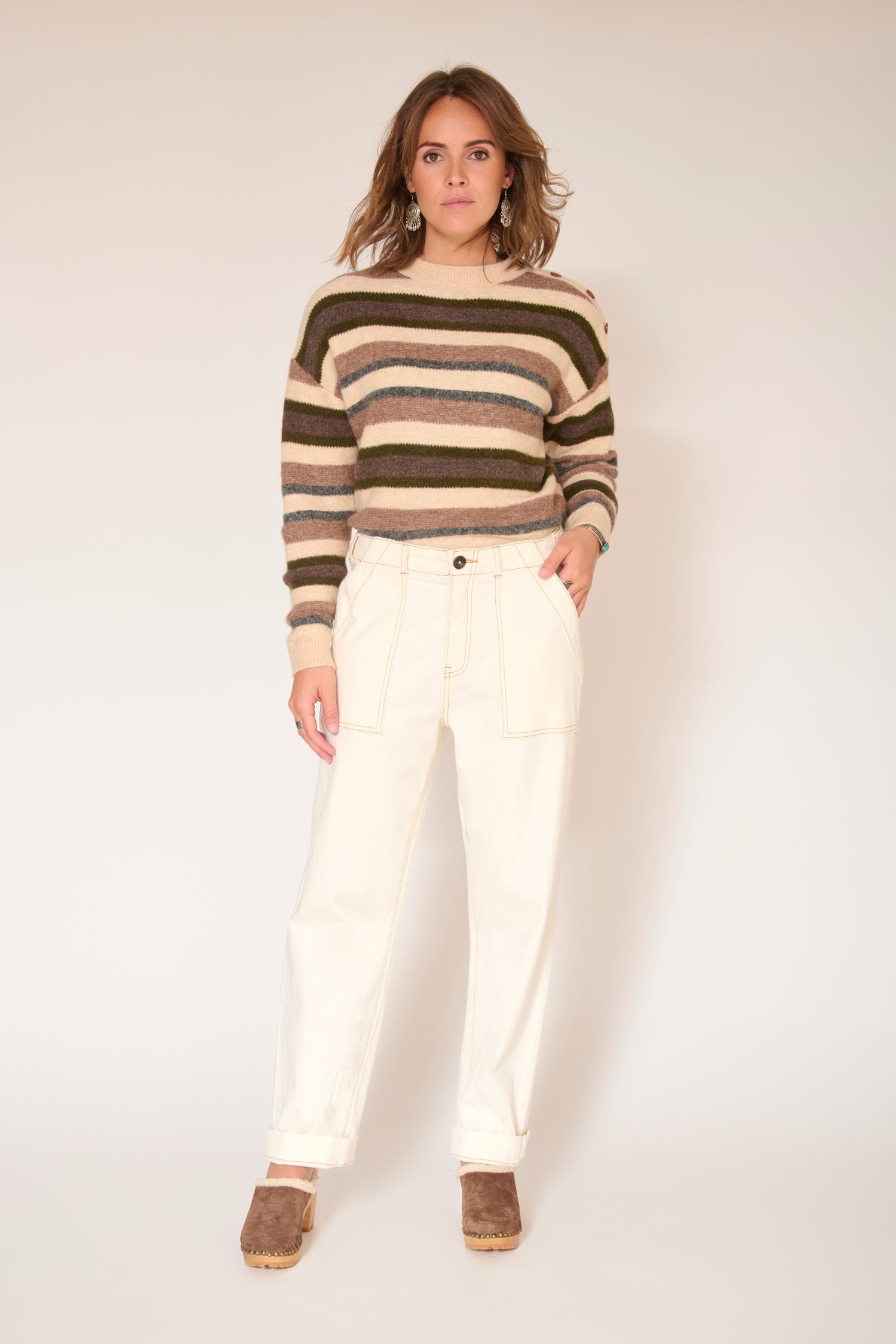 Le jean PELLY SUNSET DRILL est agréable à porter puisque confectionné dans un coton élasthanne. Ayant un coloris crème, il est facile à associer pour des looks quotidiens. Orné de deux larges poches plaquées, il vous permet de créer des tenues décontractées.