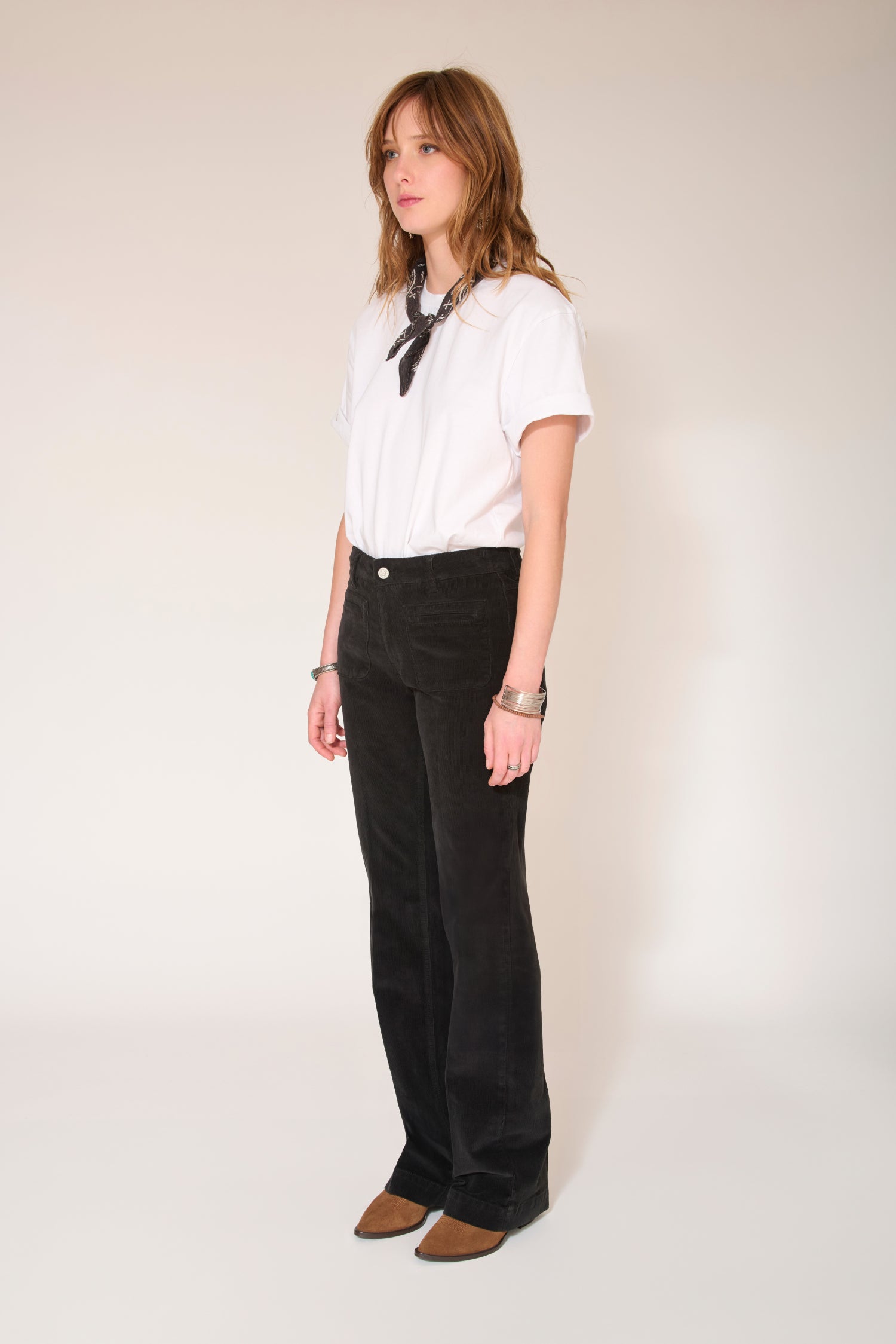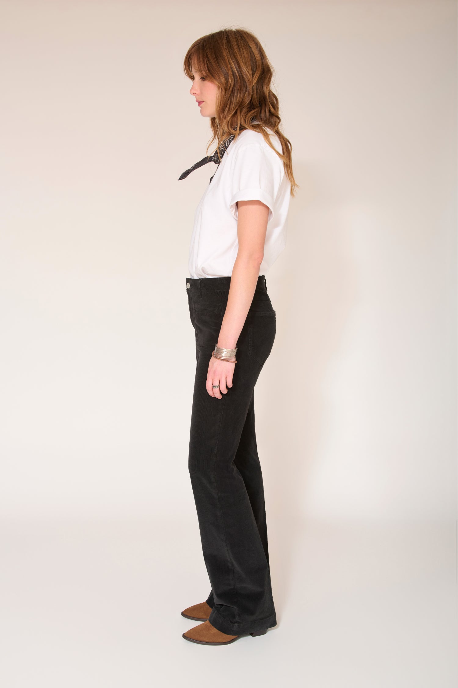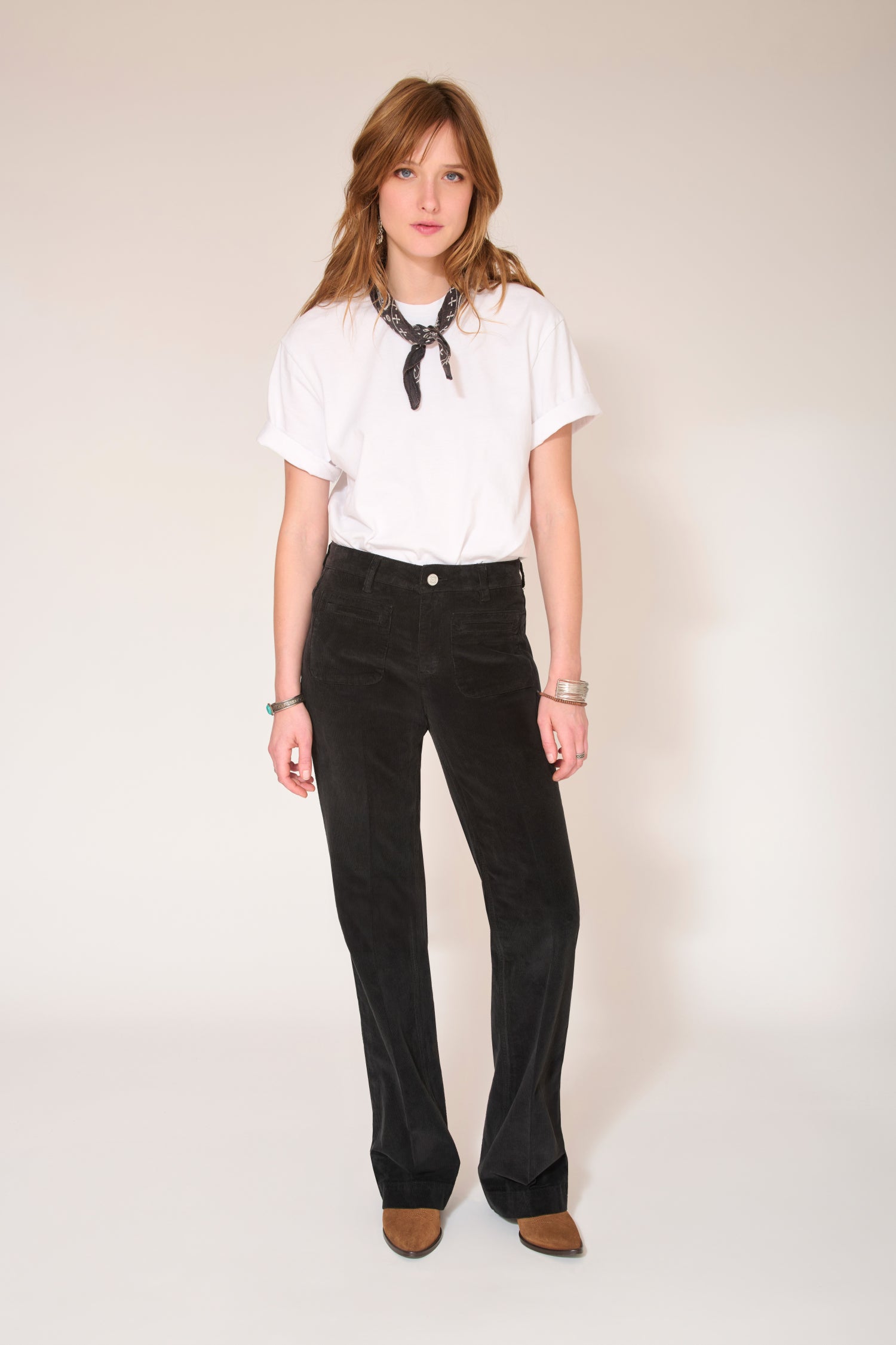 THE DIANA VELVET CHIC est un pantalon flare en velours côtelé. Ses poches plaquées au devant lui confèrent un style unique. C’est un essentiel de l’hiver et peut compléter vos meilleurs looks.