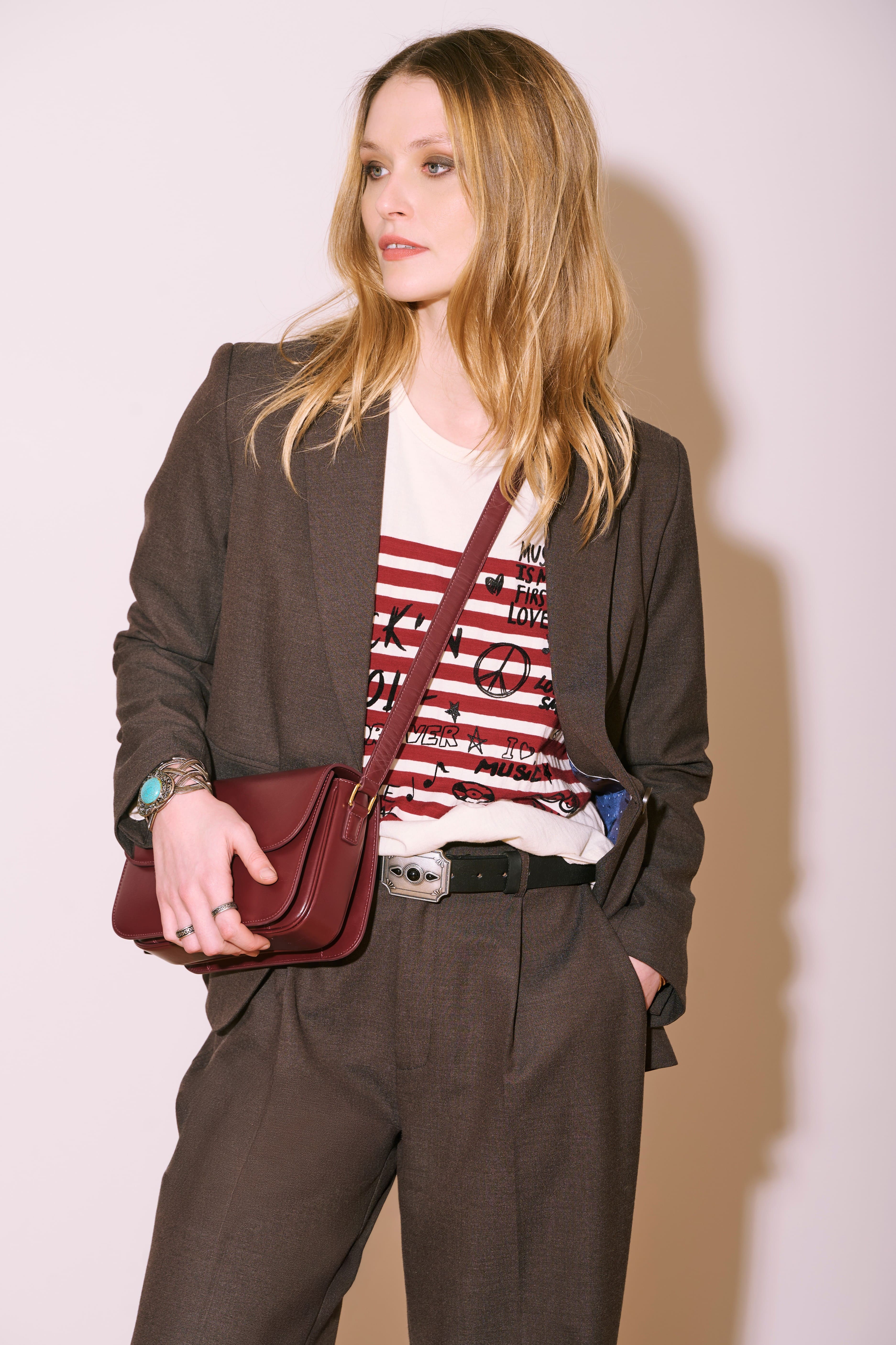 le mannequin mesure 175cm et porte une taille 38/M/28