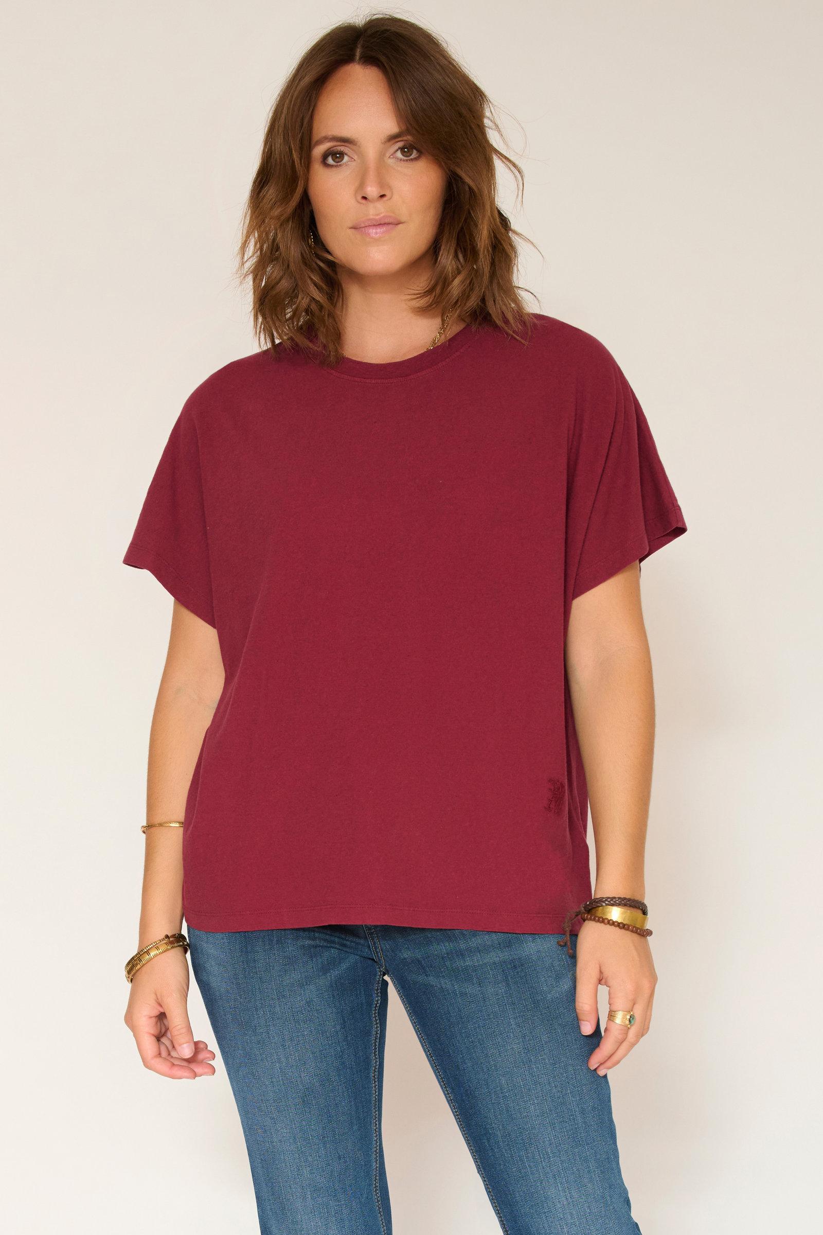 Le tee-shirt TROGIR RUBY se distingue par sa teinte rubis, un rouge profond et chaleureux qui ajoute une touche d'élégance à toute tenue. Confectionné à partir d'une composition de 80% coton et 20% lin, ce vêtement assure un confort optimal tout au long de la journée.